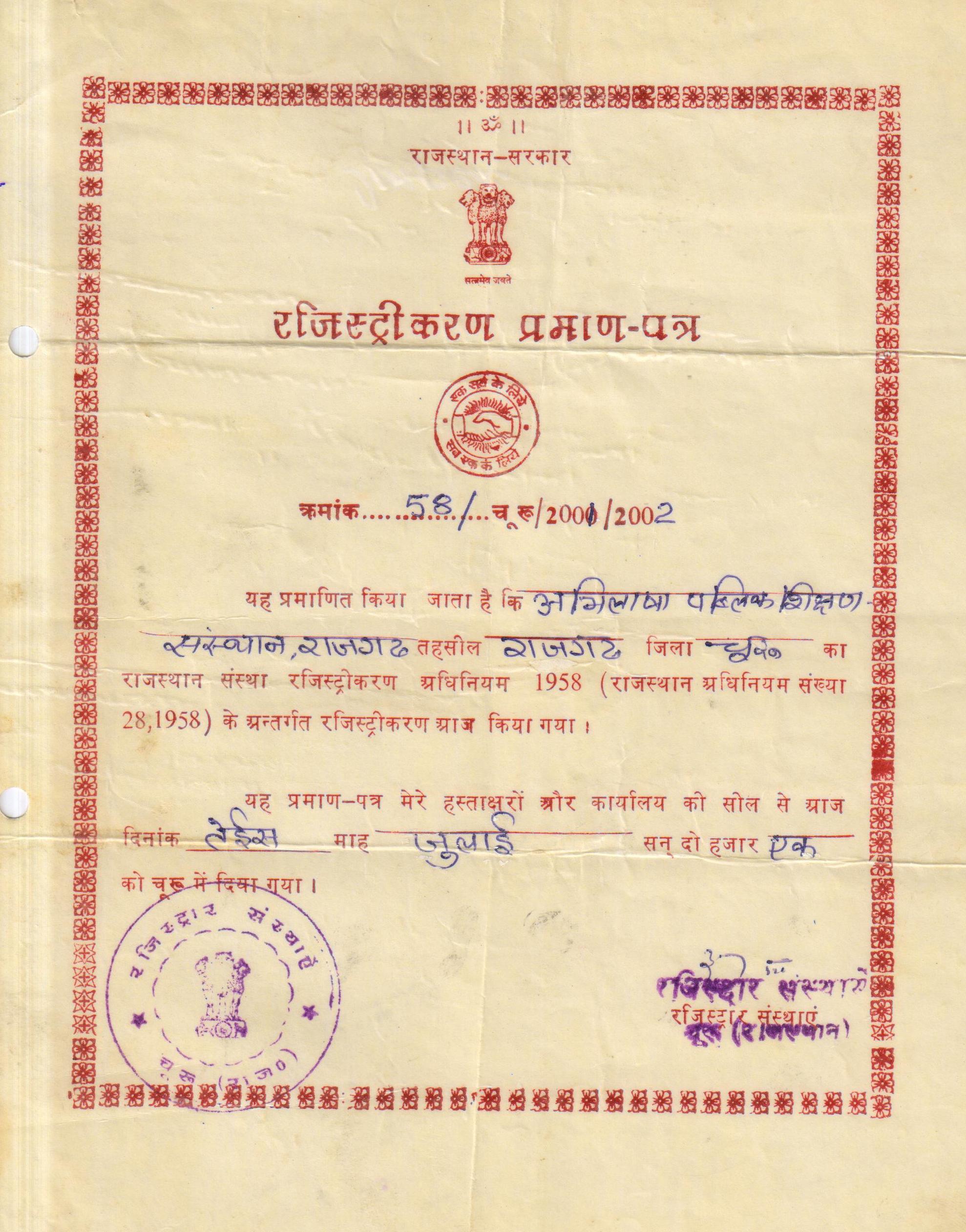 | Registration Number and its Validity | 58CHURU/2001-02 |